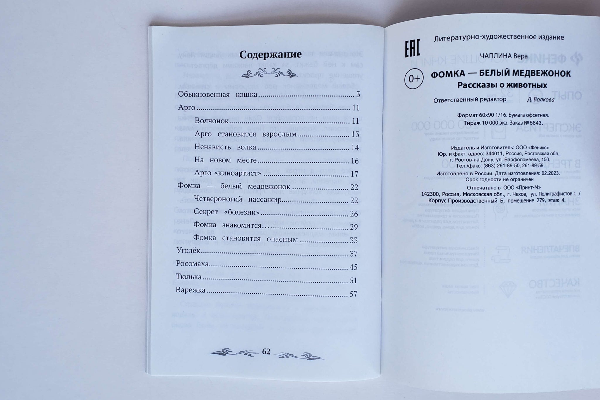 Где живет белый медведь? На Севере, среди вечной мерзлоты? В Арктике? За Полярным кругом? Да нет же, он совсем рядом и, может быть, даже на соседней улице. Правда, это не взрослый медведь, а всего лишь маленький неуклюжий медвежонок по имени Фомка. Он прилетел к нам на большом белом самолете, поселился в обычной московский квартире и устроил такой беспорядок, что пришлось перевезти его в зоопарк. Он обожает купаться в ледяной воде, на обед предпочитает сгущенку, а ещё он очень любит пошалить! Он такой славный и плюшевый, что ненароком забываешь, что на самом деле он настоящий хищник!